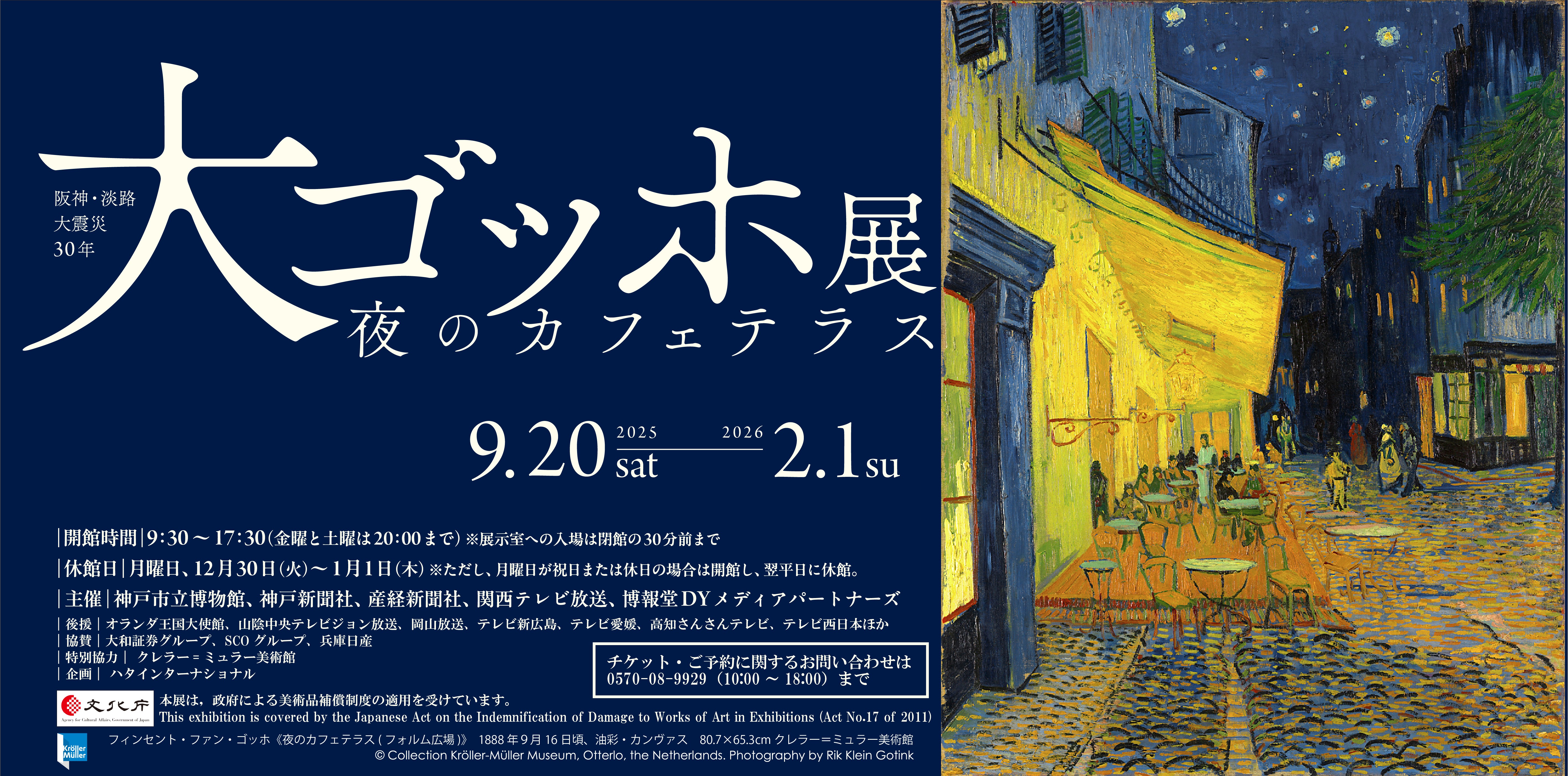 - 2025年9月17日「大ゴッホ展 夜のカフェテラス」近隣商業施設との相互割引・相互サービス・関連タイアップ企画「旧居留地ゴッホナイト」