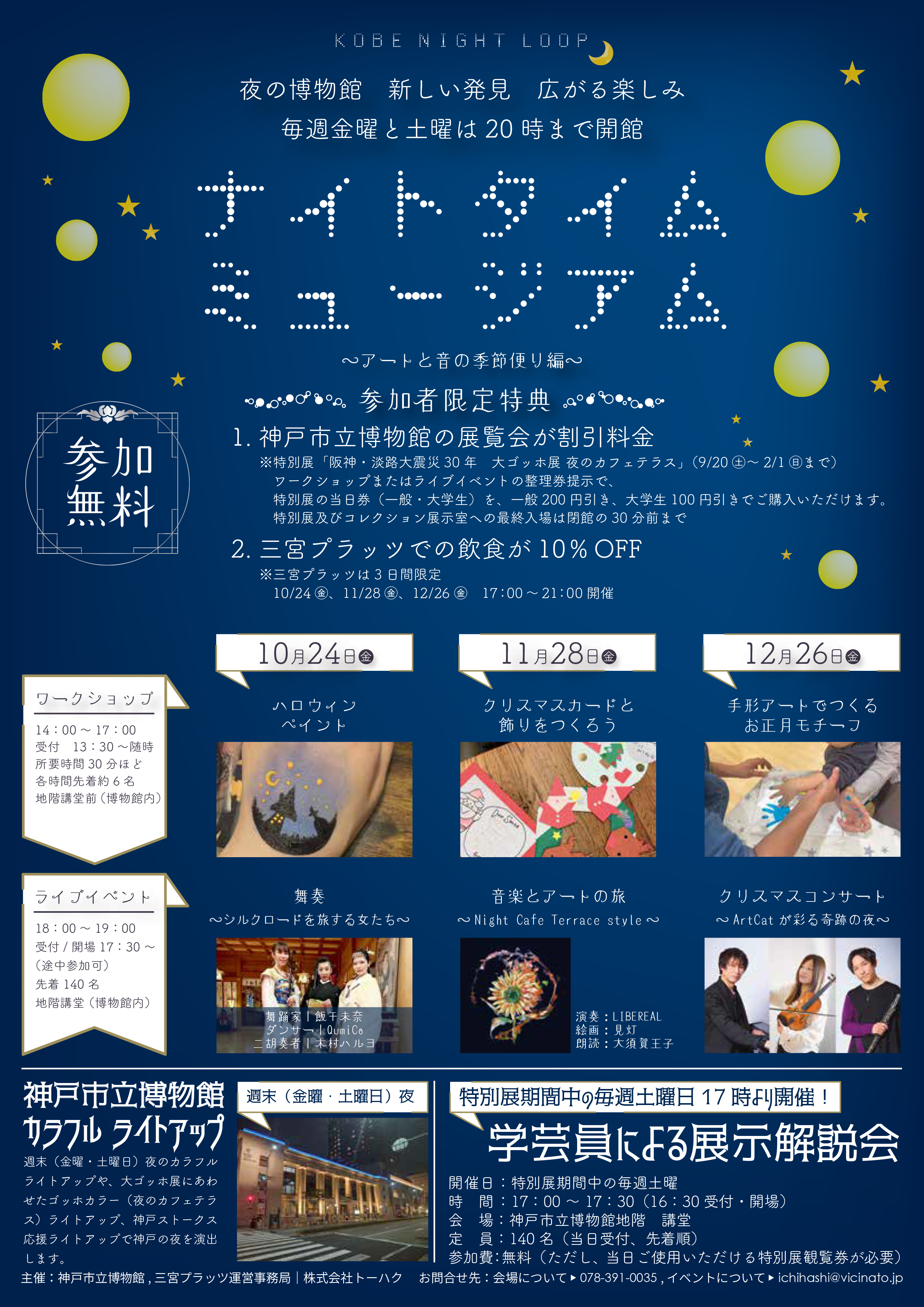 第4金曜日の夜には、ワークショップや三宮プラッツと連携したライブイベントやワークショップを開催。さまざまな楽しみ方ができる博物館、旧居留地へぜひお越しください。